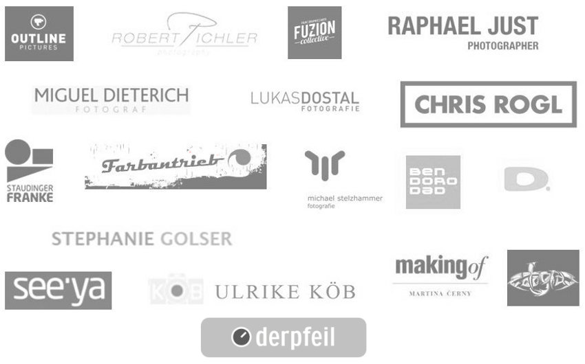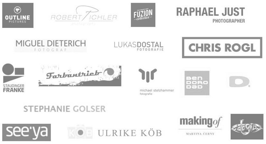 Ulrike Köb - www.koeb.at Stephanie Golser - www.speisefotografie.at Gregor Schweinester - www.fotograf.or.at Miguel Dieterich - www.migueldieterich.com Helmut Kail - www.helmutkail.at Richard Palliardi - www.instagram.com/richardpalliardi Lukas Dostal - www.lukasdostal.at Staudinger+Franke - www.staudinger-franke.com Wolfgang Zajc - www.wolfgangz.com Dieter Steinbach - www.dietersteinbach.com Outline Pictures e.U. - www.outline-pictures.com see'ya Fotoproduktion GmbH - www.seeyaproduktion.at Farbantrieb Morak & Szutta OG - www.farbantrieb.at Robert Pichler - www.robertpichler.com Ben Doro Dad Werbeagentur GmbH - www.bendorodad.com Christian Rogl - www.chrisrogl.com Fuzion Collective - www.fuzioncollective.com Raphael Just - www.raphaeljust.com Michael Stelzhammer - www.stelzhammer.cc food artists - www.foodartists.at DNA Werbeagentur GmbH - www.dnawerbe.at derpfeil Studio für Grafik und Design - www.derpfeil.at Marian & Co GmbH - www.marian.co.at/ Julia Stix - www.juliastix.com yourbrand - www.yourbrand.at Saša Asanović - www.foodstyle.at Petra Schmidt - diefotografin.at OBSCURA GmbH - www.obscura.at Vienna Paint GmbH - www.viennapaint.com Stefanie Luger Photography & Production - stefanielugerproduction.carbonmade.com PPM 2.0 GmbH - www.ppmzweinull.com Karin Zumann - www.karinzumann.com Dockyard GmbH - www.dockyard.at Since Today Werbe GmbH - www.sincetoday.at adsmart, die Werbeagentur e. U. - www.adsmart.at Christoph Meissner - www.christophmeissner.com ROTFILTER GmbH - www.rotfilter.com Martin Jager - www.martinjager.com Bernhard Angerer - www.fotostudio-angerer.at image industry Erich Hussmann e.U. - www.imageindustry.at Michael Markl - www.markl.cc MONA Film Produktion GmbH - monafilm.tv PPMNEXT Film GmbH - www.ppmnext.com Marian Inhouse Agentur - www.marian.co.at Martina Stapf - www.martinastapf.com bluforce MarKom GmbH - bluforce.at Vienna Paint Studios GmbH - www.viennapaint.com Lukas Lorenz - www.lukaslorenz.com Oliver Topf - www.olivertopf.com